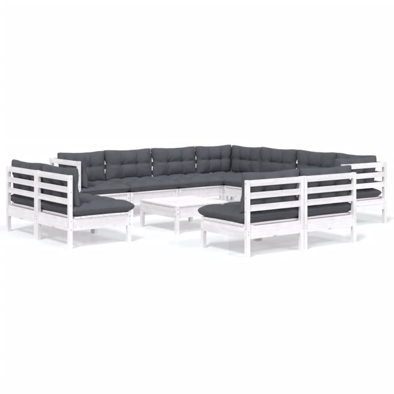 Градински лаундж комплект с възглавници 12 части бял бор масив