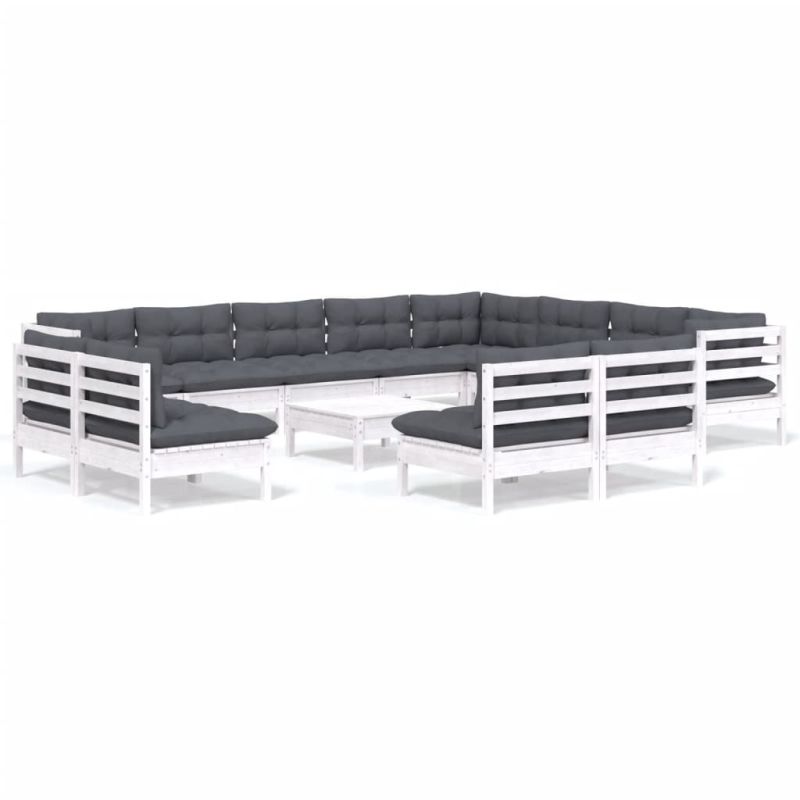 Градински лаундж комплект с възглавници 13 части бял бор масив