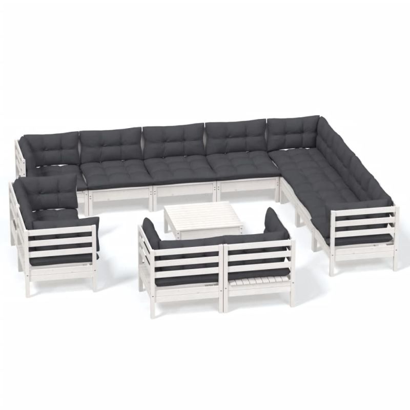 Градински лаундж комплект с възглавници 13 части бял бор масив