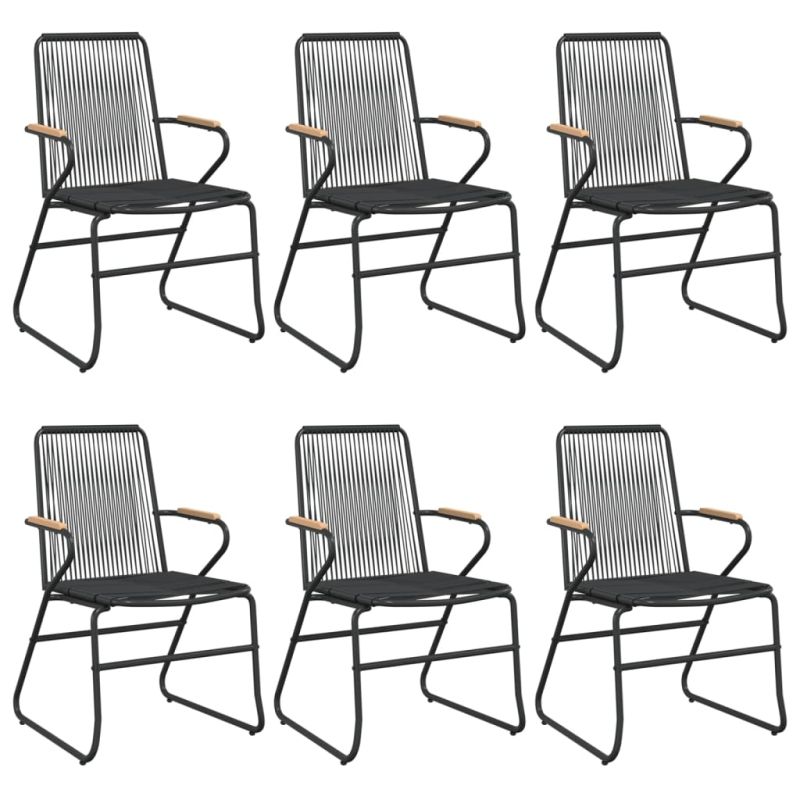 Градински трапезен комплект от 7 части, черно, PVC ратан