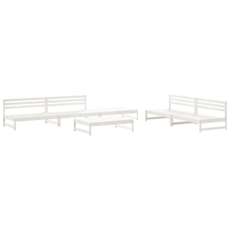 Градински лаундж комплект от 6 части, бял, масивно дърво бор