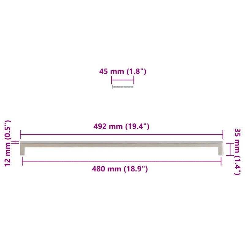 Дръжки за шкафове, 5 бр, сребристи, 480 мм, неръждаема стомана