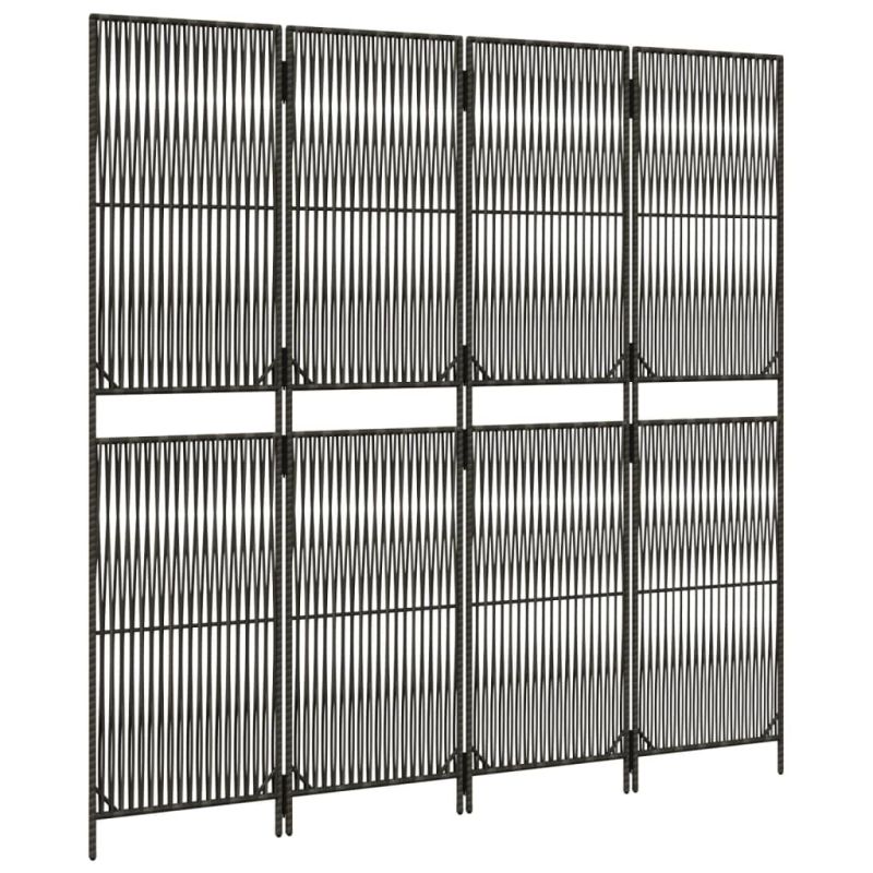 Параван за стая, 4 панела, сив, полиратан
