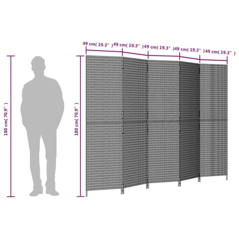 Декорирайте дома си и разпределете пространството си с този полиратанов параван за стая. Издръжлив и лесен за почистване: Всеки панел на паравана за уединение е изтъкан от устойчиви на атмосферни влияния и издръжливи полиратанови ивици, осигуряващи красив вид и улесняващи почистването.Стабилна рамка: Прахово боядисаната стоманена рамка осигурява здравина и стабилност.Гъвкав и лесен за сгъване: Всяка преграда е свързана с поцинковани панти и може лесно да се сгъва до известна степен според вашите нужди, за да спестите място.Многофункционален: Параванът за разделяне на стая е чудесен за създаване на лично пространство както на закрито, така и на открито, като спалня, всекидневна, офис и др. Можете също да го поставите пред прозорец, за да блокира интензивната слънчева светлина. Важна забележка:За да се сгъне напълно плоско, трябва да се разглобят поцинкованите панти.