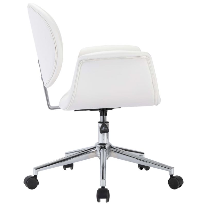 Със стилния си и съвременен дизайн, този въртящ се офис стол е перфектно, практично и модерно допълнение за всекидневната, спалнята, фоайето или офиса. Той осигурява удобно място в кабинета, където вашето семейство да работи, или в трапезарията, където да си почива. Седалката и облегалката са с ергономичен дизайн, тапицирани с мека изкуствена кожа и плътно подплатени с пяна, което прави стола изключително удобен. Металните крака допълват неговата издръжливост и естетически вид. Столът се върти на 360 градуса и разполага с механизъм за регулиране на височината чрез системата за повдигане с газов амортисьор. Офис столът се сглобява лесно. Максимално 110 кг на седалка. Съобразете се с риска от открит огън и други източници на силна топлина в близост до продукта.