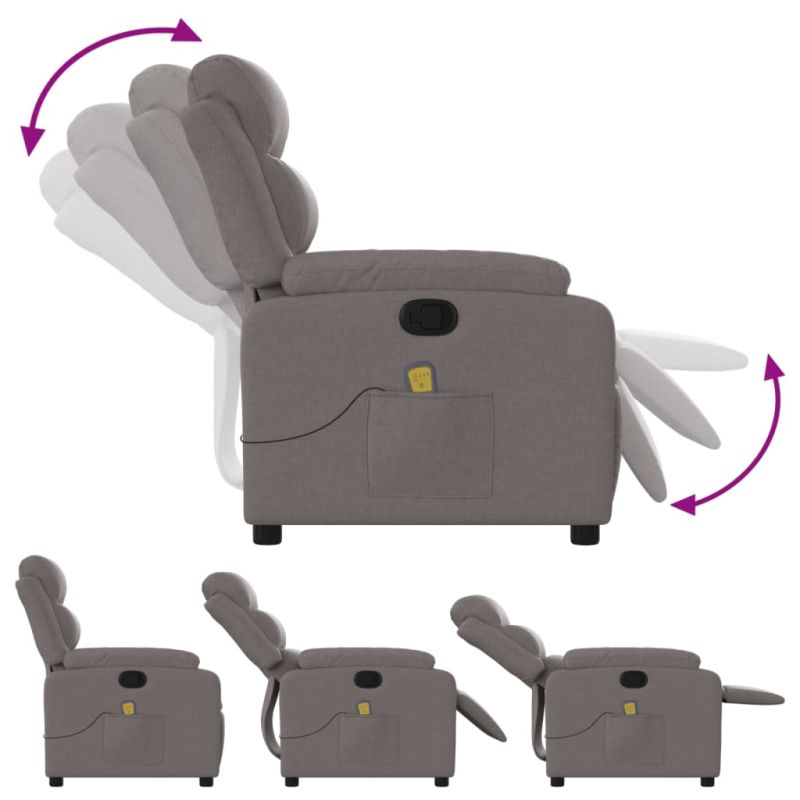 Облегнете се и се отпуснете в този изключително комфортен масажен наклоняем стол! Функция за ръчно накланяне: Този накланящ се стол има дръжка от дясната страна. Можете ръчно да настроите поставката за крака и облегалката до произволна позиция според вашето удобство с просто издърпване на дръжката. Тази функция позволява максимален наклон от 135 градуса. Освен това облегалката може бързо да се върне на първоначалното си място с лесно издърпване на дръжката.Функция за вибрация: Представените 6 масажни точки ви позволяват да изпитате по-целенасочен масаж. Освен това включеното ръчно управление ви позволява да избирате различни програми за масаж. Функцията за масаж се захранва от USB конектора, но сертифицираният 5V USB източник на захранване не е включен.Удобно седене: Дебело подплатената седалка, облегалката и широките подлакътници, покрити с текстил, осигуряват уютно и топло усещане, което ви кара да се чувствате като в прегръдка, докато седите. Тъканта се отличава със семпъл и изчистен вид и е дишаща и издръжлива.Удобен страничен джоб: Този фотьойл има страничен джоб за вашето дистанционно управление или за поддържане на вашите основни вещи леснодостъпни.Здрава и стабилна рамка: Рамката, изработена от дърво и метал, осигурява здрава структура и стабилност. Този накланящ се фотьойл е удобен и издръжлив. Максимално 110 кг на седалка. Този продукт се захранва с DC 5V, но сертифицираният 5V USB източник на захранване не е включен в комплекта. По-високото напрежение може да доведе до прегряване на устройството и да доведе до повреда на устройството и потенциален риск от прегряване и пожар.