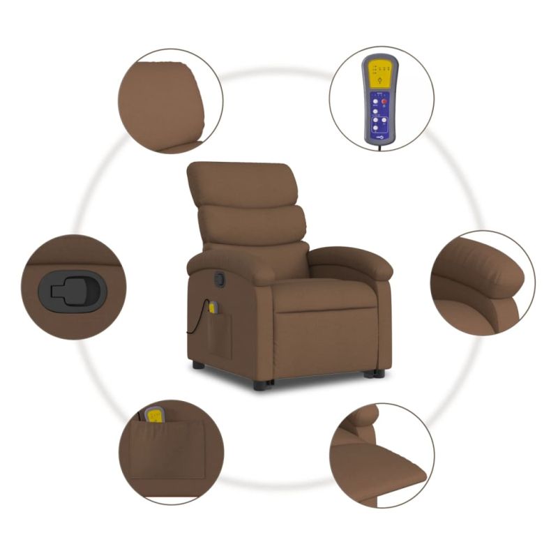 Изправящ масажен реклайнер стол, кафяв, текстил