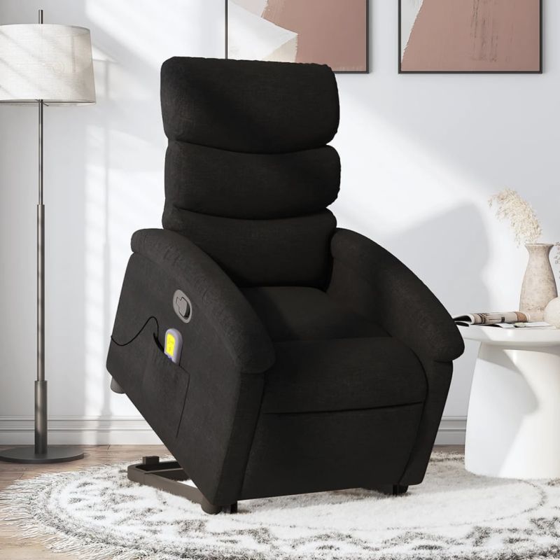 Начало Дом и градина Мебели Столове Фотьойли, кресла и разтегателни фотьойли Масажен изправящ стол реклайнер, черен, текстил