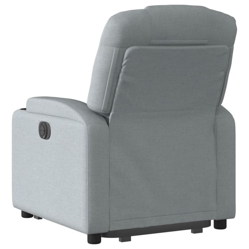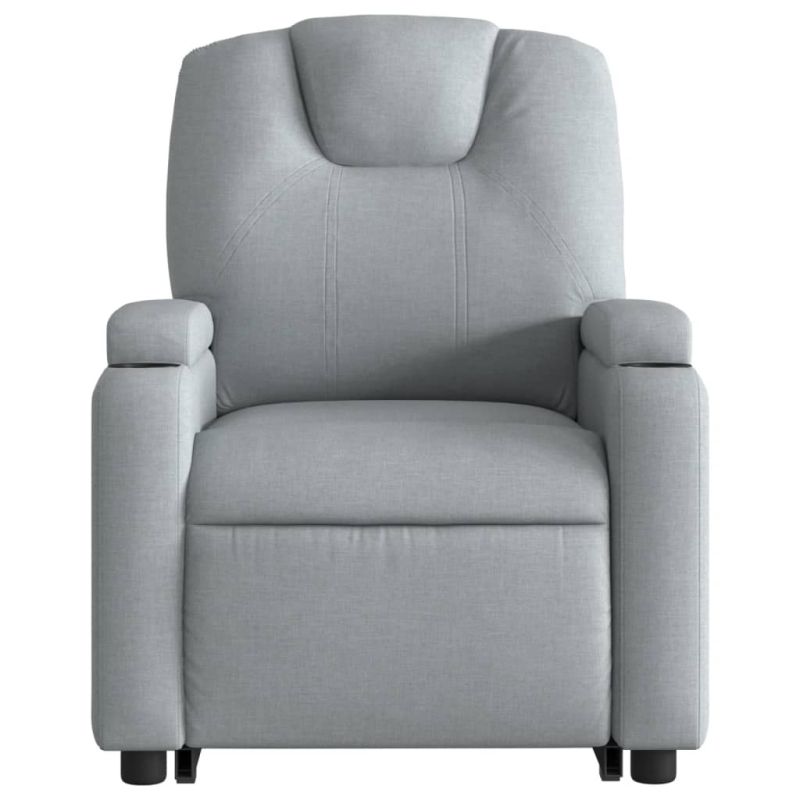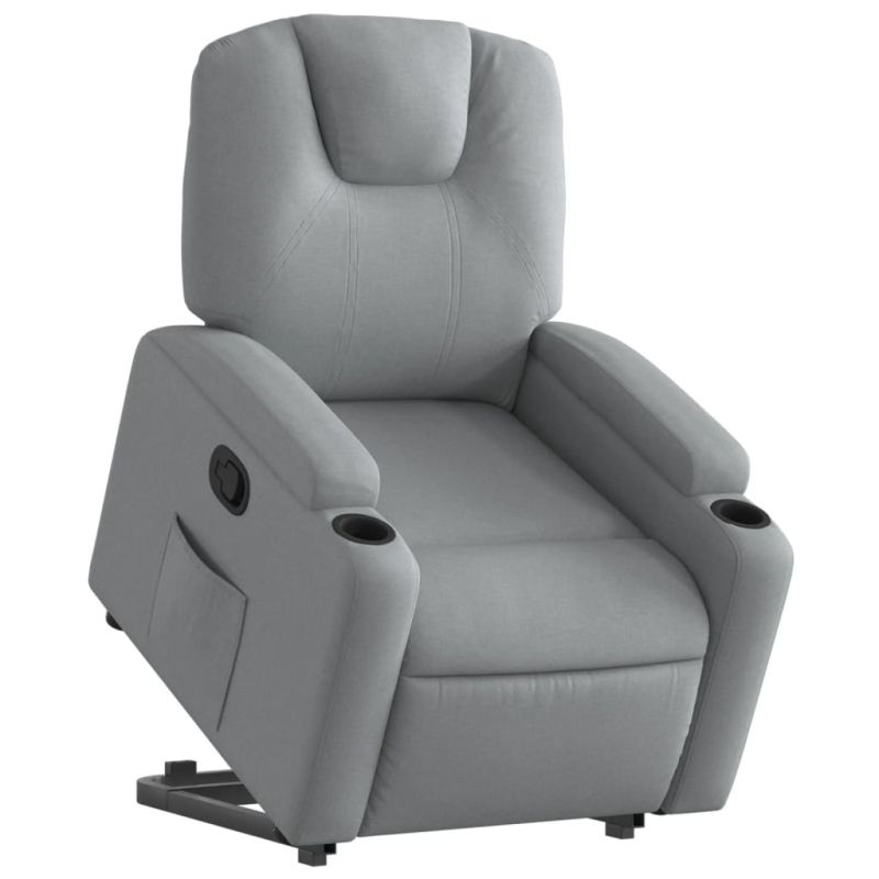 Облегнете се и се отпуснете в този изключително комфортен изправящ наклоняем стол! Функция за повдигане: Този стол реклайнер е оборудван с електрически двигател с функция за повдигане. Благодарение на функцията, която избутва целия стол нагоре, можете лесно да стоите, без да натоварвате гърба и коленете си с просто натискане на бутона.Функция за ръчно накланяне: Този накланящ се стол има дръжка от дясната страна. Можете ръчно да настроите поставката за крака и облегалката до произволна позиция според вашето удобство с просто издърпване на дръжката. Тази функция позволява максимален наклон от 135 градуса. Освен това облегалката може бързо да се върне на първоначалното си място с лесно издърпване на дръжката.Удобно седене: Дебело подплатената седалка, облегалката и широките подлакътници, покрити с текстил, осигуряват уютно и топло усещане, което ви кара да се чувствате като в прегръдка, докато седите. Тъканта се отличава със семпъл и изчистен вид и е дишаща и издръжлива.Удобни поставки за чаши и страничен джоб: Този фотьойл разполага с две удобни поставки за чаши за вашите напитки и страничен джоб, за да държите основните си вещи леснодостъпни.Здрава и стабилна рамка: Рамката, изработена от дърво и метал, осигурява здрава структура и стабилност. Този накланящ се фотьойл е удобен и издръжлив. Максимално 110 кг на седалка.Този уред може да се използва от деца на възраст от 8 години и повече и от лица с намалени физически, сетивни или умствени способности или с липса на опит и познания, ако са получили надзор или инструкции за безопасно използване на уреда и разбират свързаните с него опасности. Децата не трябва да си играят с уреда. Децата не трябва да почистват и да извършват потребителска поддръжка без надзор.