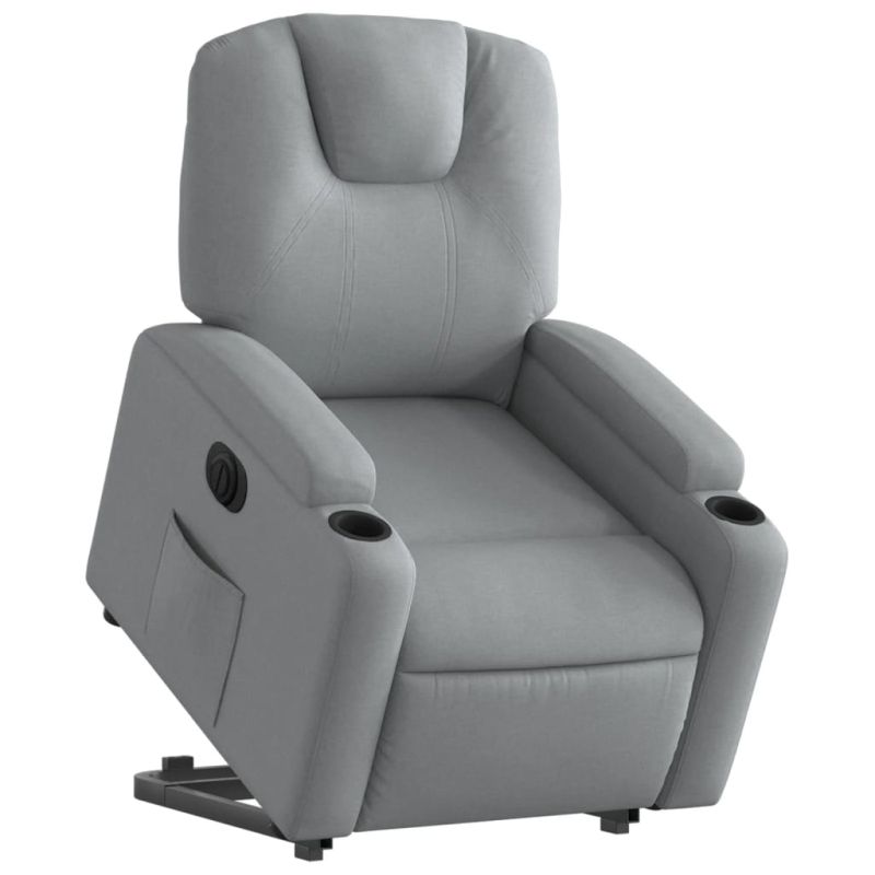 Електрически изправящ реклайнер стол, светлосив, текстил
