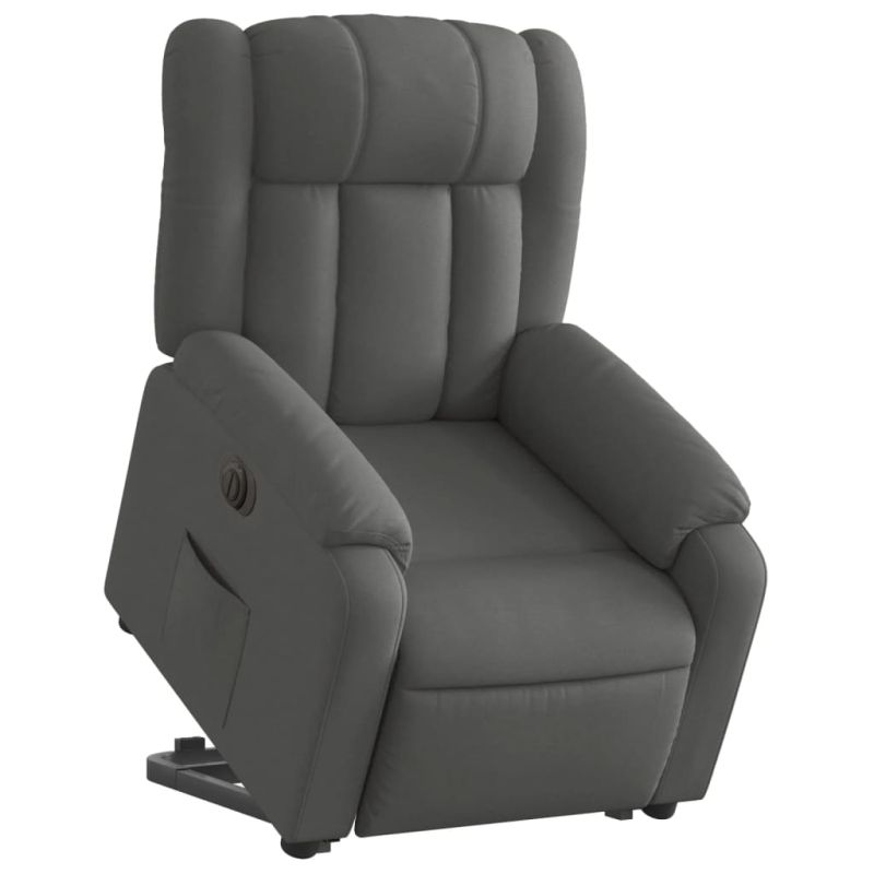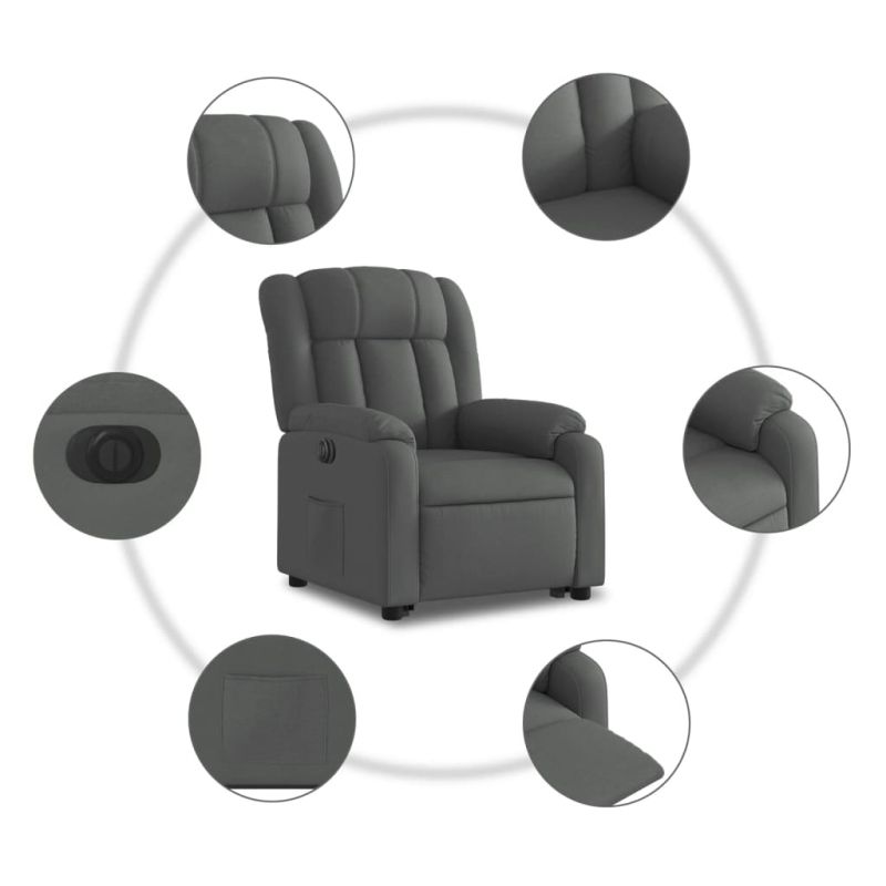 Електрически изправящ реклайнер стол, тъмносив, текстил