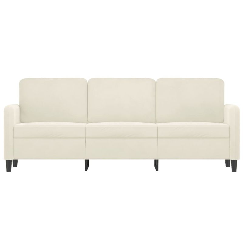 Този 3-местен диван е отлично място за вашето време за разговори, четене, гледане на телевизия или просто почивка. Той е предназначен да бъде фокусна точка във вашия дом. Меко кадифе: Кадифето е мека и луксозна материя, която се отличава с гъста купчина равномерно отрязани влакна за гладка повърхност. Кадифената тъкан се отличава с меко усещане, което я прави приятна на допир.Здрава и стабилна рамка: Металната рамка на тапицирания диван осигурява здравина и стабилност.Удобна седалка: Диванът е много удобен с дебело подплатените седалки, подлакътниците и възглавниците за гърба.Привличащ вниманието дизайн: С изчистен, но модерен дизайн, това канапе е предназначено да привлича вниманието във вашата стая. Максимално 110 кг на седалка. Съобразете се с риска от открит огън и други източници на силна топлина в близост до продукта.