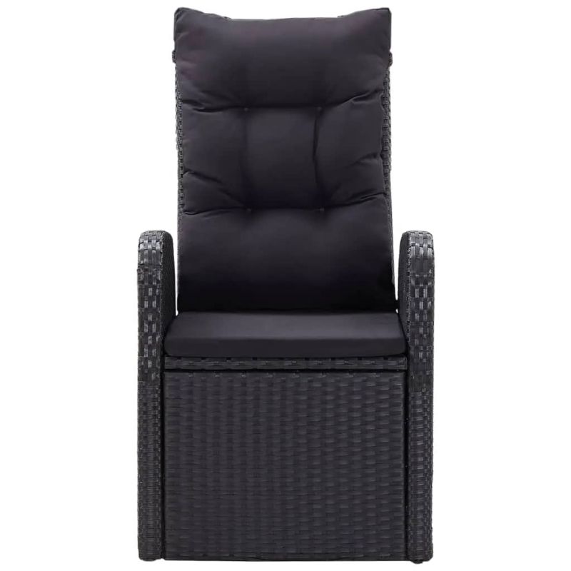Този стилен градински трапезен комплект е предназначен да бъде фокусната точка на вашата градина или вътрешен двор! Той е чудесен избор за хранене на открито или за почивка на открито! Прахово боядисаните стоманени рамки правят масата и столовете здрави и стабилни за ежедневна употреба на открито. Благодарение на водоустойчивия PE ратан, столовете са лесни за почистване и издръжливи. Облегалката и поставката за крака могат да се регулират чрез издърпване на бутона отстрани. Благодарение на олекотената конструкция, те са лесни за преместване. Дебело подплатените възглавници на седалките също добавят допълнителен комфорт. Полиестерните калъфки не се нуждаят от много поддръжка и могат да се свалят и перат. Освен това, гладкият стъклен плот се почиства лесно с влажна кърпа и е идеален за поставяне на ястия, напитки и различни декоративни предмети. Забележка: За да удължите живота на вашите градински мебели, ви препоръчваме да ги защитите с водоустойчиво покривало. Максимално 110 кг на седалка. Съобразете се с риска от открит огън и други източници на силна топлина в близост до продукта.