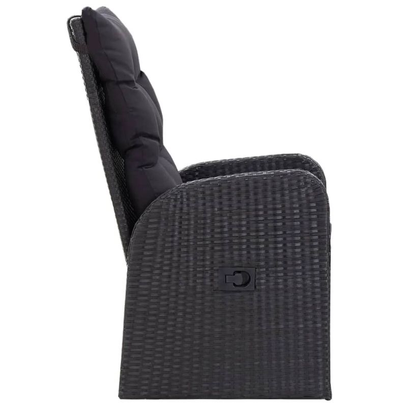 Този стилен градински трапезен комплект е предназначен да бъде фокусната точка на вашата градина или вътрешен двор! Той е чудесен избор за хранене на открито или за почивка на открито! Прахово боядисаните стоманени рамки правят масата и столовете здрави и стабилни за ежедневна употреба на открито. Благодарение на водоустойчивия PE ратан, столовете са лесни за почистване и издръжливи. Облегалката и поставката за крака могат да се регулират чрез издърпване на бутона отстрани. Благодарение на олекотената конструкция, те са лесни за преместване. Дебело подплатените възглавници на седалките също добавят допълнителен комфорт. Полиестерните калъфки не се нуждаят от много поддръжка и могат да се свалят и перат. Освен това, гладкият стъклен плот се почиства лесно с влажна кърпа и е идеален за поставяне на ястия, напитки и различни декоративни предмети. Забележка: За да удължите живота на вашите градински мебели, ви препоръчваме да ги защитите с водоустойчиво покритие. Максимално 110 кг на седалка. Съобразете се с риска от открит огън и други източници на силна топлина в близост до продукта.