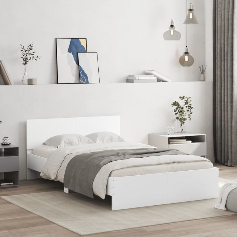 Рамка за легло с табла, бяла, 120x200 см