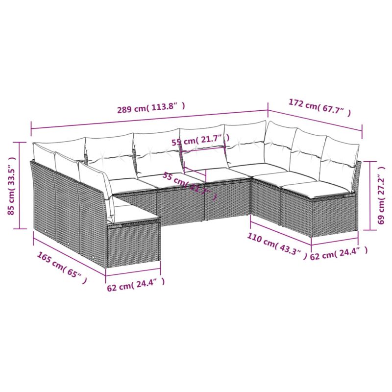 Градински комплект диван с възглавници 9 части бежов полиратан