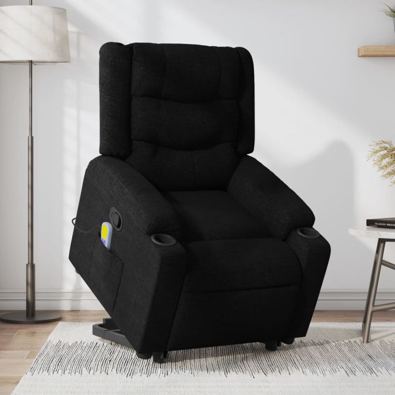 Облегнете се и се отпуснете в този изключително комфортен изправящ масажен и наклоняем стол! Функция за повдигане: Този стол реклайнер е оборудван с електрически двигател с функция за повдигане. Благодарение на функцията, която избутва целия стол нагоре, можете лесно да стоите, без да натоварвате гърба и коленете си с просто натискане на бутона.Функция за ръчно накланяне: Този накланящ се стол има дръжка от дясната страна. Можете ръчно да настроите поставката за крака и облегалката до произволна позиция според вашето удобство с просто издърпване на дръжката. Тази функция позволява максимален наклон от 135 градуса. Освен това облегалката може бързо да се върне на първоначалното си място с лесно издърпване на дръжката.Функция за вибрация: Представените 6 масажни точки ви позволяват да изпитате по-целенасочен масаж. Освен това включеното ръчно управление ви позволява да избирате различни програми за масаж. Функцията за масаж се захранва от USB конектор, който изисква сертифициран 5V USB захранващ източник (не е включен).Удобно седене: Дебело подплатената седалка, облегалката и широките подлакътници, покрити с текстил, осигуряват уютно и топло усещане, което ви кара да се чувствате като в прегръдка, докато седите. Тъканта се отличава със семпъл и изчистен вид и е дишаща и издръжлива.Удобен страничен джоб: Този фотьойл има страничен джоб за вашето дистанционно управление или за поддържане на вашите основни вещи леснодостъпни.Здрава и стабилна рамка: Рамката, изработена от дърво и метал, осигурява здрава структура и стабилност. Този накланящ се фотьойл е удобен и издръжлив. Съобразете се с риска от открит огън и други източници на силна топлина в близост до продукта. Максимално 110 кг на седалка. Този уред може да се използва от деца на възраст от 8 години нагоре и от лица с намалени физически, сетивни или умствени способности или с липса на опит и познания, ако са получили надзор или инструкции относно използването на уреда по безопасен начин и разбират свързаните с това опасности. Децата не трябва да си играят с уреда. Децата не трябва да почистват и да извършват потребителска поддръжка без надзор.