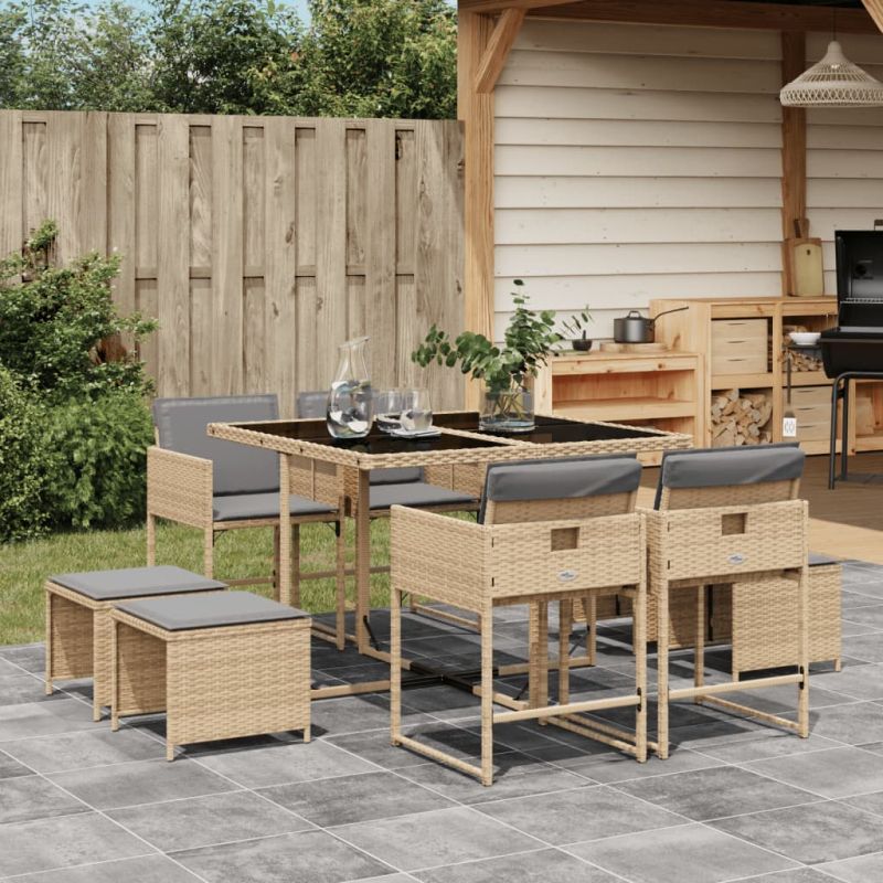 Градински комплект с възглавници 9 части бежов микс полиратан