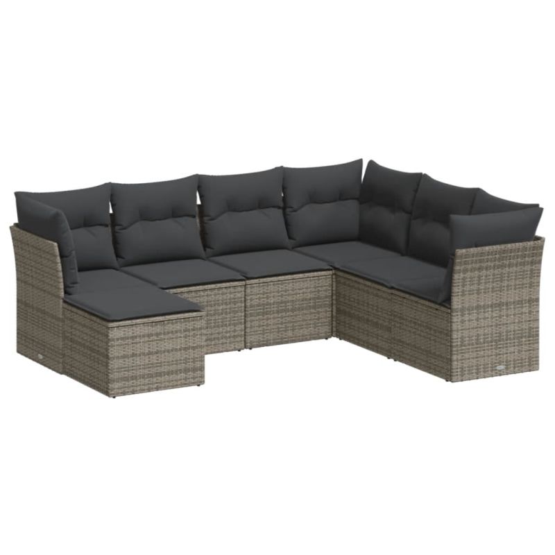 Градински диван с възглавници, 7 части, полиратан, сив