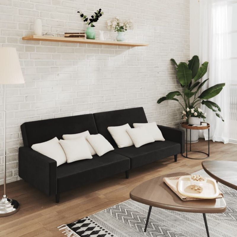 2-местно разтегателно канапе, черно, кадифе
