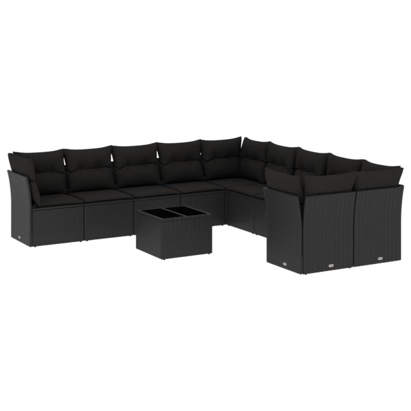 Градински комплект диван с възглавници 11 части черен полиратан