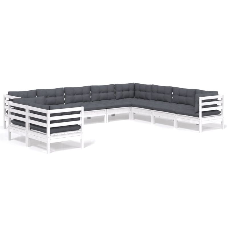 Градински лаундж комплект с възглавници 10 части бял бор масив