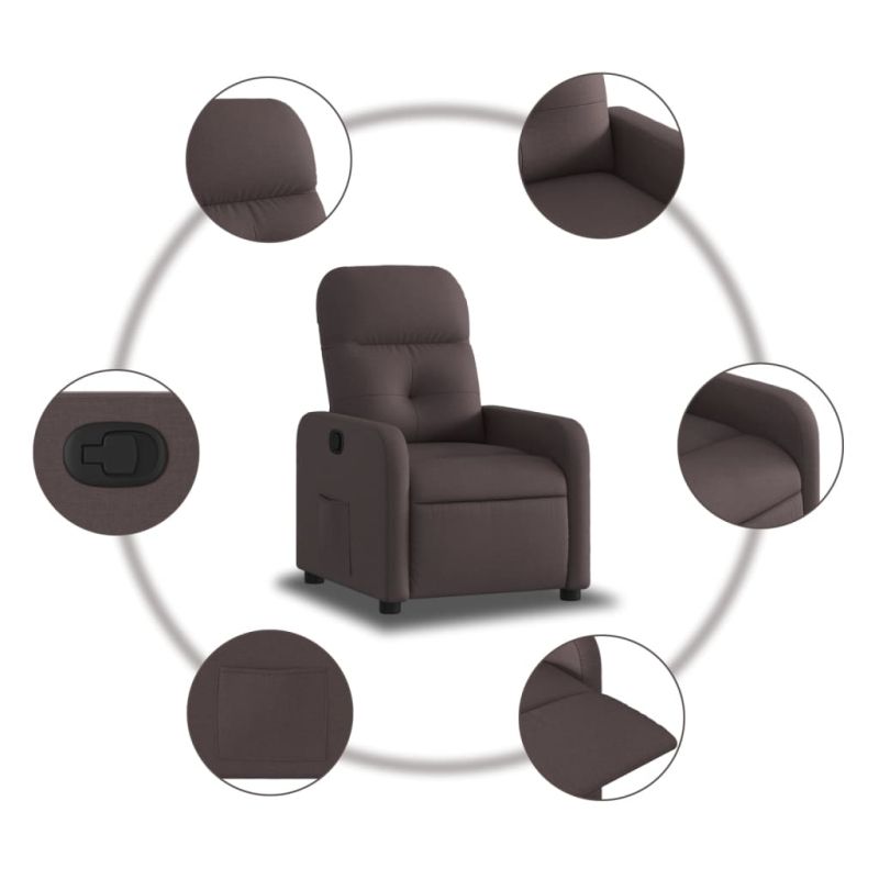 Облегнете се и се отпуснете в този изключително комфортен наклоняем стол! Функция за ръчно накланяне: Този накланящ се стол има дръжка от дясната страна. Можете ръчно да настроите поставката за крака и облегалката до произволна позиция според вашето удобство с просто издърпване на дръжката. Тази функция позволява максимален наклон от 135 градуса. Освен това облегалката може бързо да се върне на първоначалното си място с лесно издърпване на дръжката.Удобно седене: Дебело подплатената седалка, облегалката и широките подлакътници, покрити с текстил, осигуряват уютно и топло усещане, което ви кара да се чувствате като в прегръдка, докато седите. Тъканта се отличава със семпъл и изчистен вид и е дишаща и издръжлива.Удобен страничен джоб: Този фотьойл има страничен джоб, за да държите основните си вещи леснодостъпни.Здрава и стабилна рамка: Рамката, изработена от дърво и метал, осигурява здрава структура и стабилност. Този накланящ се фотьойл е удобен и издръжлив. Максимално 110 кг на седалка. Съобразете се с риска от открит огън и други източници на силна топлина в близост до продукта.