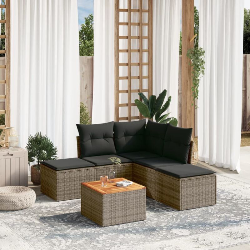 Този градински диван е идеалното допълнение към вашия заден двор, тераса или вътрешен двор, осигурявайки удобно и привлекателно пространство за разговори със семейството и приятелите или просто за почивка и забавление на открито. Издръжлив материал: PE ратан, известен също като полиратан, е здрав синтетичен материал с малко необходима поддръжка, който прилича на естествен ратан. Той е лек, лесен за почистване и често се използва за външни мебели поради своята издръжливост и устойчивост на атмосферни влияния.Удобна седалка: Тази мебел за открито, снабдена с плътно подплатени възглавници, предлага удобство при сядане.Стабилен и лесен за почистване плот: Тази градинска маса има плот от акациево дърво, който е здрав, издръжлив и лесен за почистване с влажна кърпа.Калъф, който може да се сваля и може да се пере: Тези възглавници за седалки имат подвижни калъфи за лесно пране и поддръжка.Модулен дизайн: Този комплект външни мебели има модулен дизайн, което го прави напълно гъвкав и лесен за преместване, така че можете да създадете персонализирана подредба на външни мебели. Добре е да се знае:За да сте сигурни, че вашите външни мебели ще останат красиви, ви препоръчваме да ги защитите с водоустойчиво покривало.