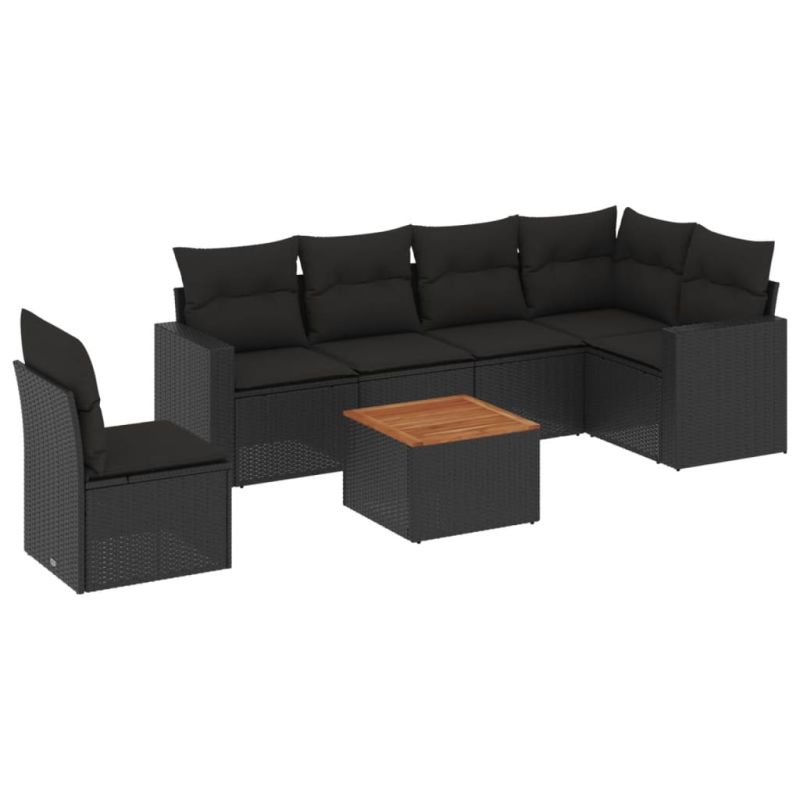 Градински комплект диван с възглавници 7 части черен полиратан