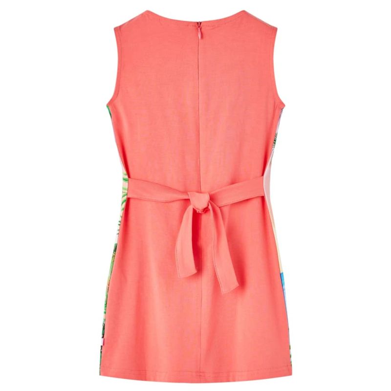 Нашата линия за детски дрехи е за достъпни, висококачествени и издръжливи ежедневни облекла за деца на възраст от 1,5 до 10 години. Нашата гама включва якета, пуловери, ризи и много други, с разнообразие от стилове, размери и цветове. Следвайки стандарта за високо качество на пазара, ние използваме висококачествени материали и усъвършенствани производствени техники. Тази детска рокля без ръкави има обло деколте и се затваря с невидим цип на гърба. Тази коралова детска рокля се отличава с тропически пейзаж и животински принт отпред. Детската къса рокля има връзки отзад, които леко се издърпват отстрани, създавайки фина линия на талията, без да е прекалено стегната около кръста. Детската къса рокля е изработена от мека материя, която включва памук и еластан за комфорт и дишане. Добре е да знаете: Таблицата с размери на снимката предоставя размери за деца на възраст от 1,5 до 10 години, като обхваща височината, гърдите, талията и ханша. Лесно можете да откриете подходящия за вашето дете.
