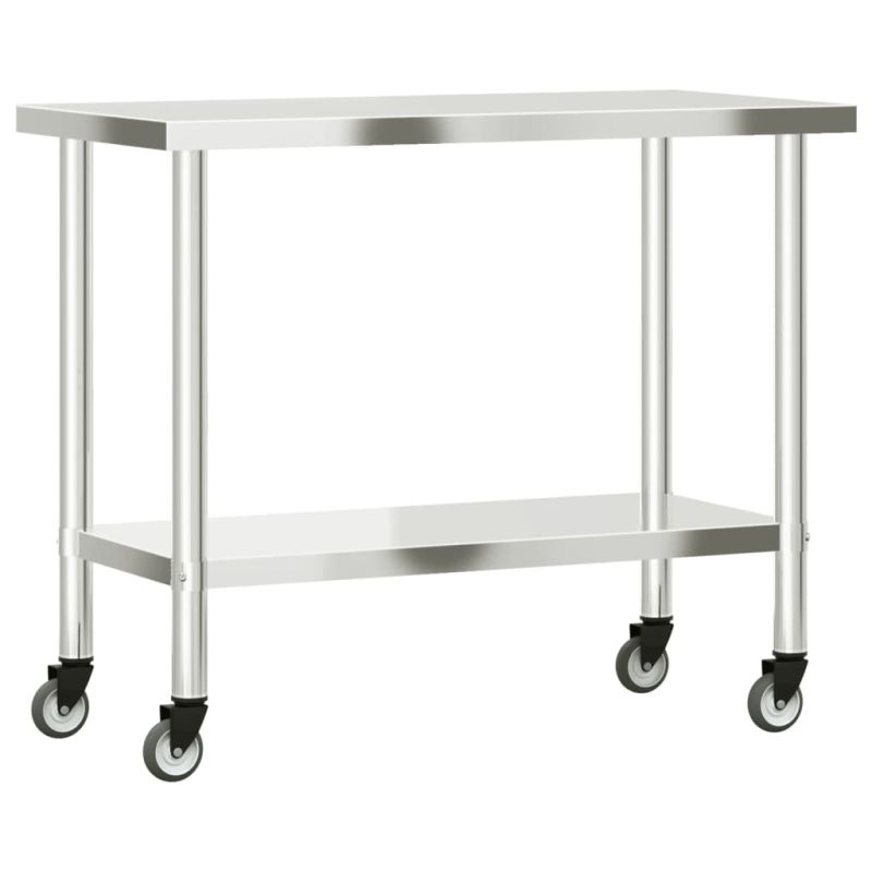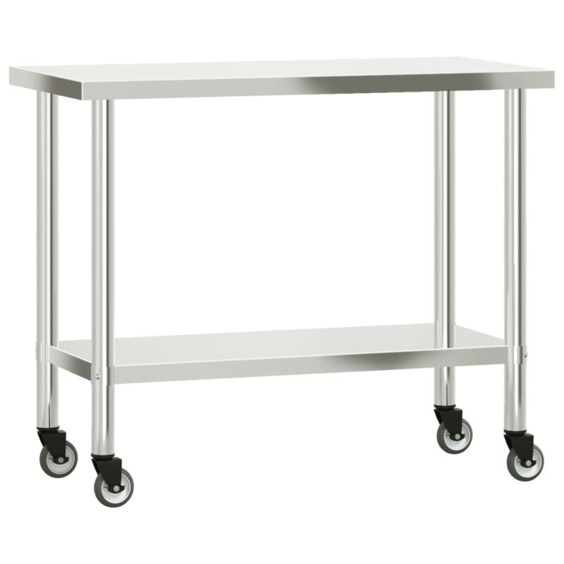 Кухненска работна маса с колелца, 110x55x85 см, инокс