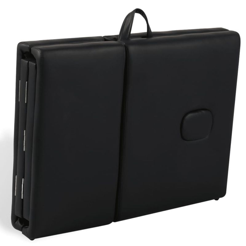 Черна сгъваема масажна кушетка 4 зони с дървена рамка