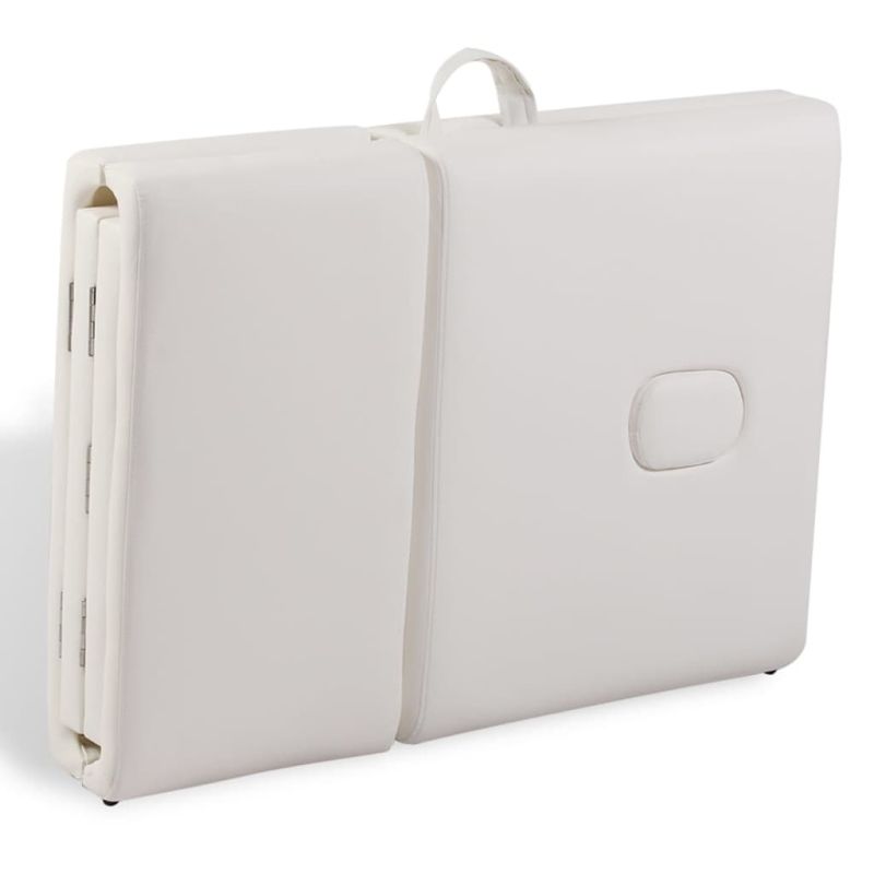 Кремавобяла сгъваема масажна кушетка 4 зони с дървена рамка