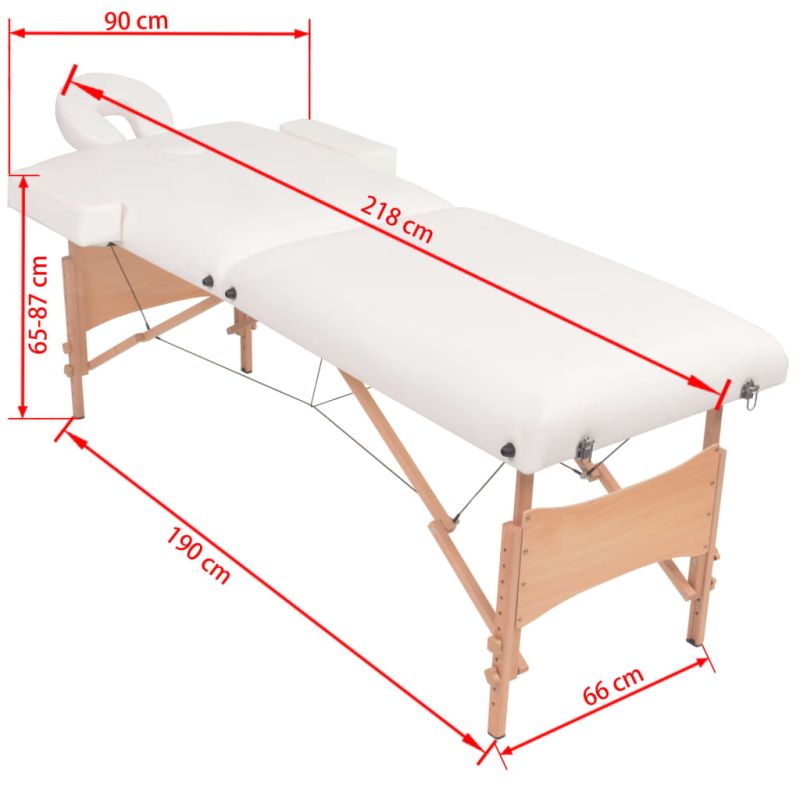 Сгъваема масажна кушетка с 2 зони и столче, 10 см пълнеж, бяла