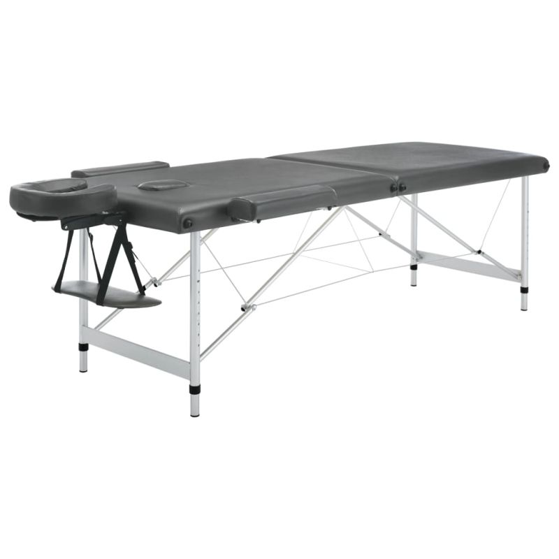 Масажна кушетка с 2 зони, алуминиева рамка, антрацит, 186х68 см