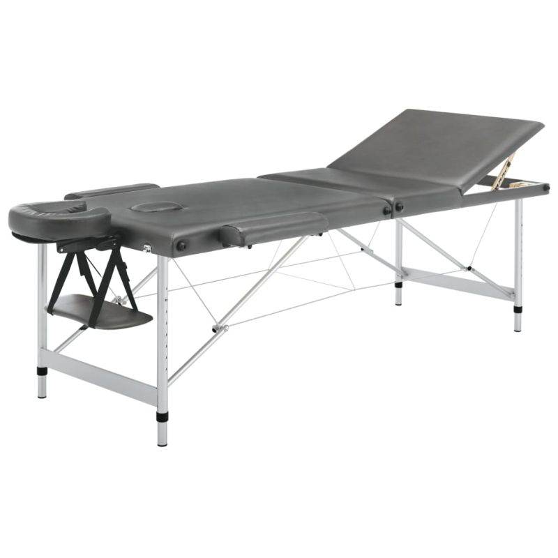 Масажна кушетка с 3 зони, алуминиева рамка, антрацит, 186х68 см