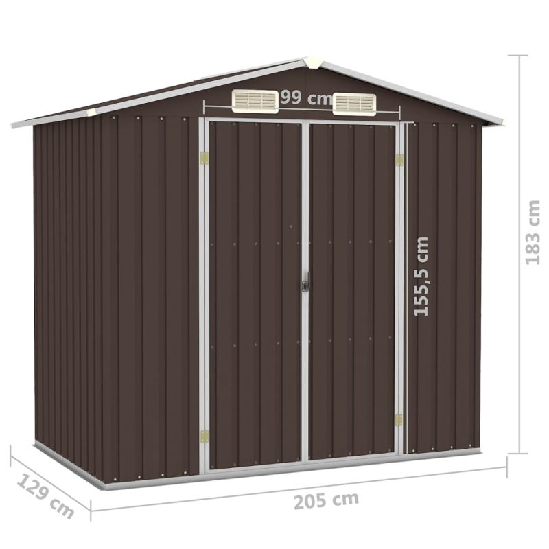 Градинска барака, кафява, 205x129x183 см, поцинкована стомана