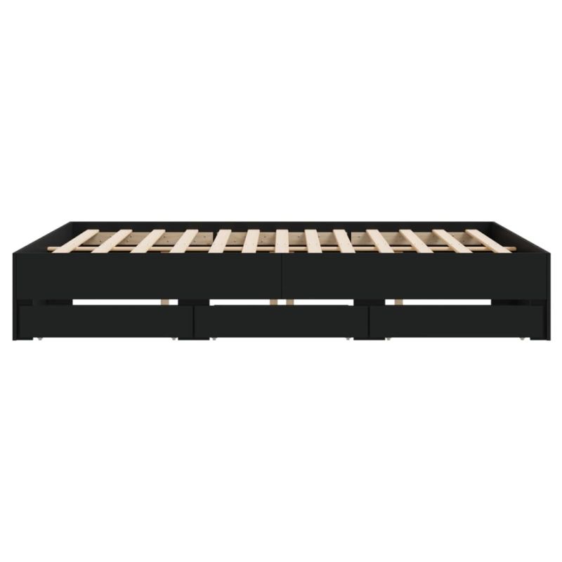 Рамка за легло с чекмеджета, черна, 160x200 см, инженерно дърво