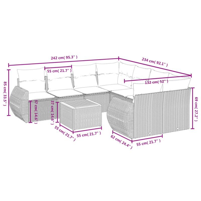 Градински комплект диван с възглавници 9 части бежов полиратан