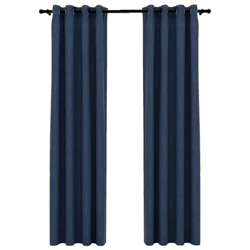 Затъмняващи завеси имитация лен с отвори 2 бр сини 140x245 см
