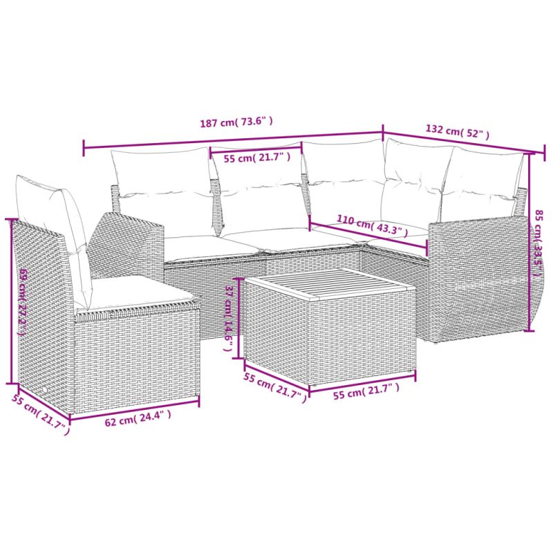 Начало Дом и градина Мебели Външни мебели Комплекти градински мебели Градински диван с възглавници, 6 части, черен, полиратан