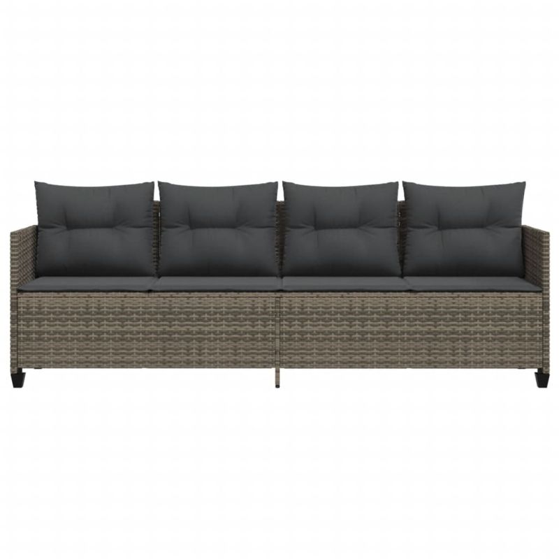 Шезлонг с възглавници, сив, полиратан