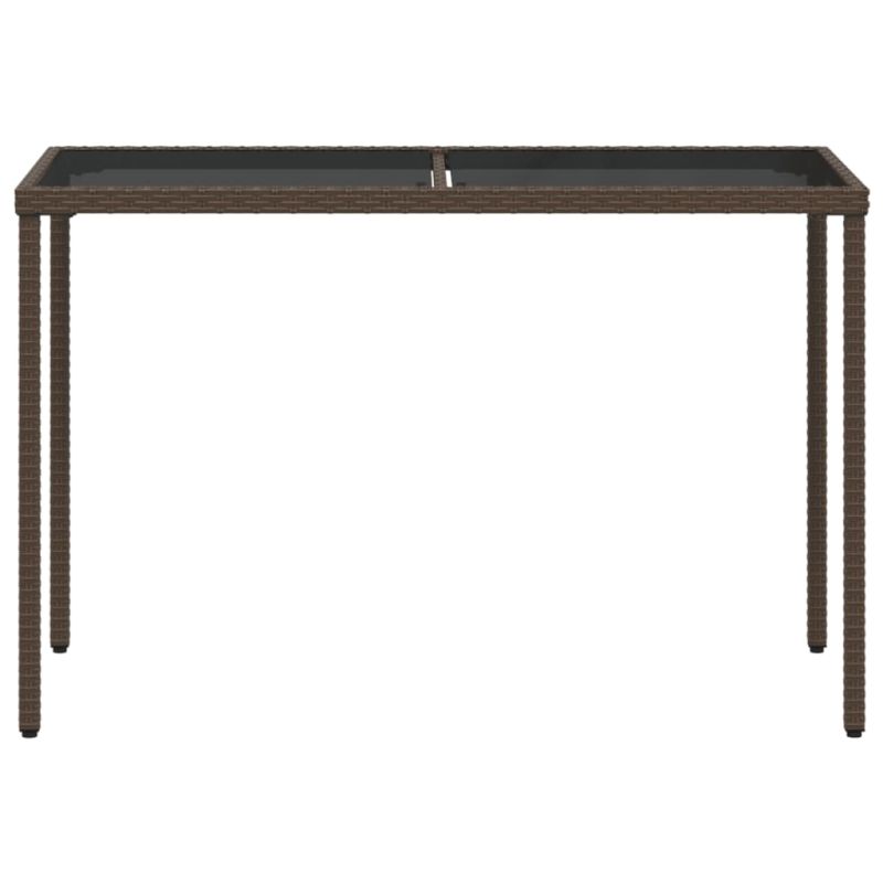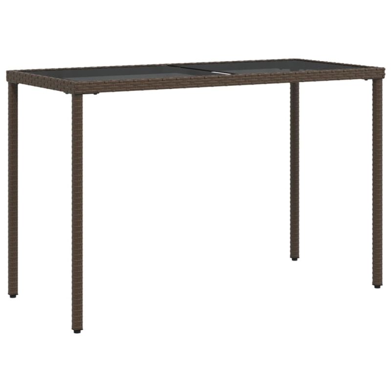 Градинска маса със стъклен плот кафява 115x54x74 см полиратан