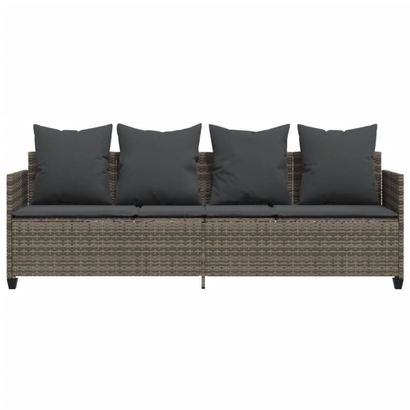 Шезлонг с възглавници, сив, полиратан