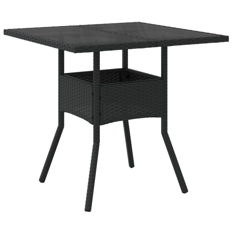 Градинска маса със стъклен плот, черна, 80x80x75 см, полиратан