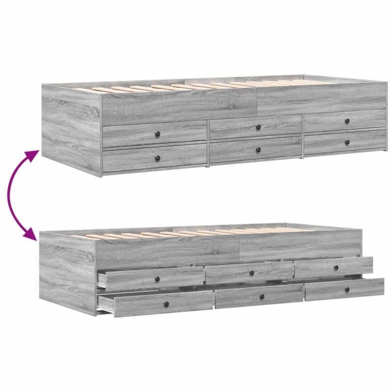 Дневно легло с чекмеджета, без матрак, сив сонома, 100x200 см