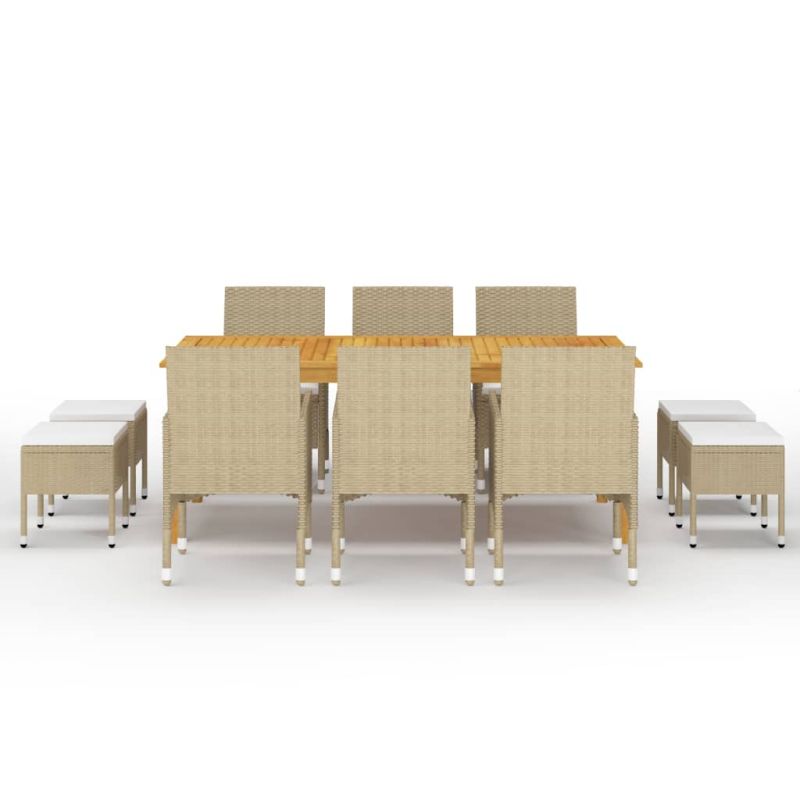 Създайте завладяваща и сплотена естетика във вашето външно пространство с този градински трапезен комплект! Трапезната маса е изработена от масивно акациево дърво с маслено покритие, което я прави здрава, издръжлива и лесна за поддръжка. Със стоманена рамка с прахово покритие, покрита с устойчив на атмосферни влияния PE ратан, тези трапезни столове и табуретки са здрави и лесни за почистване. Проектиран с извита облегалка и подлакътник, трапезният стол е с по-ергономична форма за максимален комфорт. Всяка седалка е снабдена с подвижна дебело подплатена възглавница за по-голям комфорт по време на отдих. Важна забележка: Препоръчваме покриване на трапезния комплект по време на дъжд, сняг и слана, за да се запази най-добре. Максимално 110 кг на седалка. Съобразете се с риска от открит огън и други източници на силна топлина в близост до продукта.