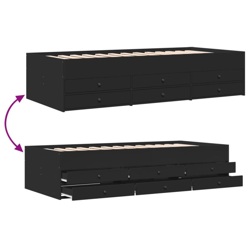 Начало Мебели Легла и аксесоари Легла и рамки за легла Дневно легло с чекмеджета, без матрак, черно, 90x200 см