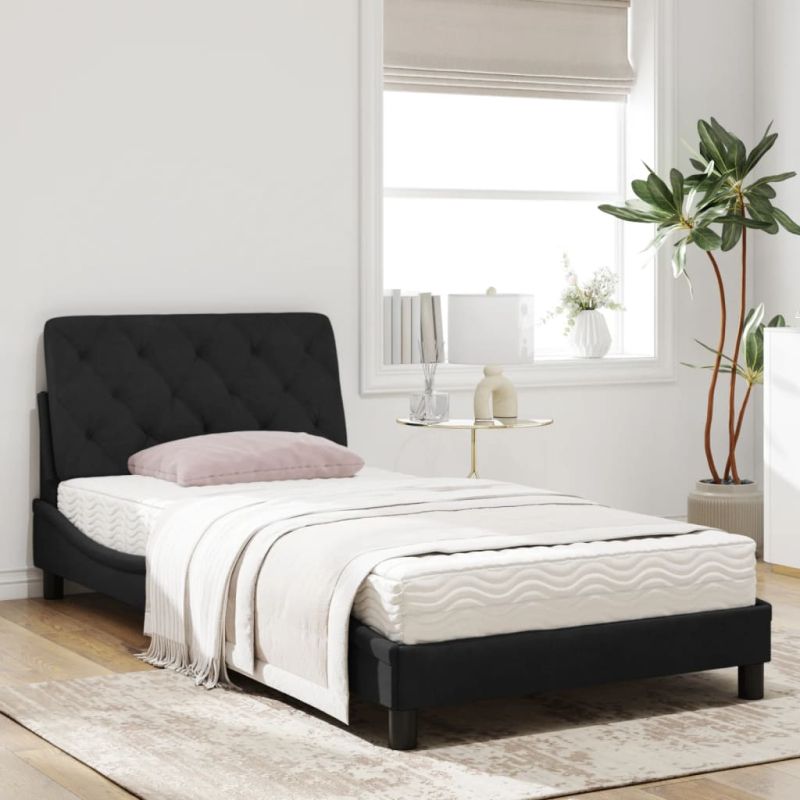 Начало Мебели Легла и аксесоари Легла и рамки за легла Легло с матрак, черно, 100x200 см, кадифе