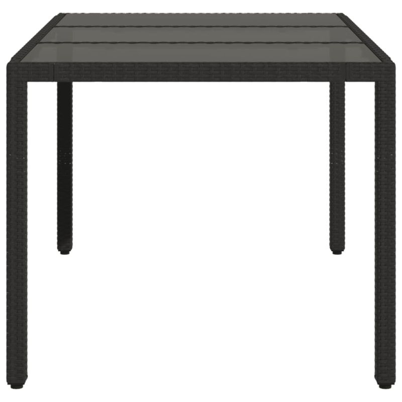 Градинска маса със стъклен плот черен 150x90x75 см полиратан